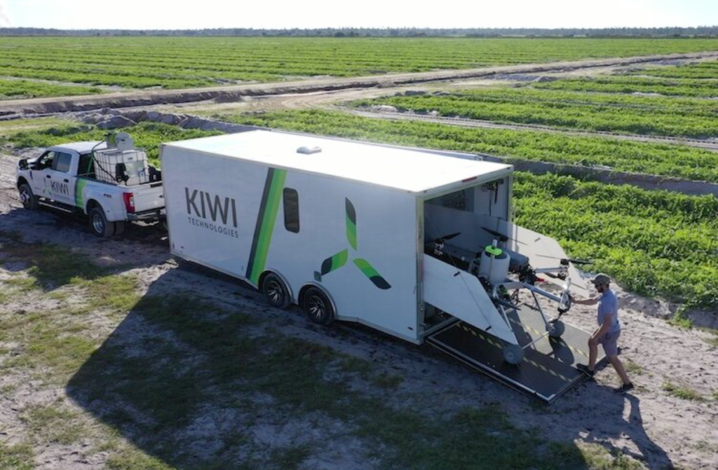 Kiwi社のドローンは、ピックアップトラックほどの大きさで、500ポンドの重さの農薬を運ぶことができます。