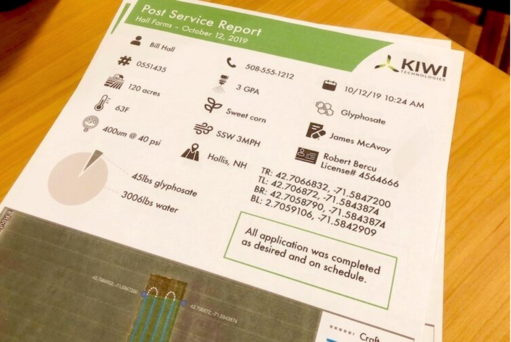 散布が完了すると、散布した量、場所、時間が性格に表示されたレポートが送信されます。