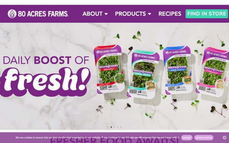 | 公式サイト | https://www.80acresfarms.com/ |