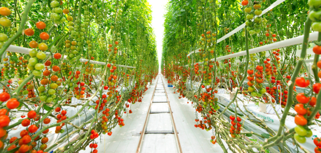 ハウス内の温度や湿度を最適化した安定的な周年栽培と自動化・省人化による24時間稼働によって効率的にトマトを生産・収穫し販売しています。