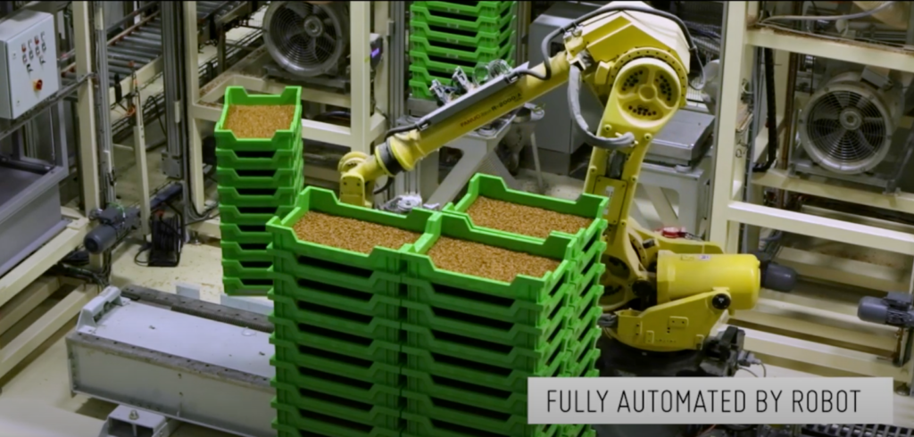 人間の飢餓を回避するためには、タンパク質の生産性を大幅に向上させる必要があり、Ynsect社は栄養素が高くタンパク質を多く含む昆虫タンパク質がその課題の解決策となると考えています。現在では、昆虫の大規模飼育のための革新的な技術を開発し、昆虫から動物飼料を生産する工程を自動化しています。