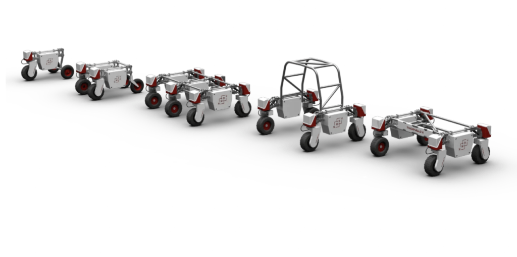 Saga Robotics社が開発したThorvaldは、ほとんどの農業環境に合わせて設定できる自律型モジュール式ロボットです。モジュール式のため、同じ基本モジュールを使って全く異なるロボットを構築し、基本的なハンドツールだけで再構築することができます。畑、トンネル、果樹園、温室で動作し、病気管理のための光処理、果物や野菜の摘み取り、フェノタイピング、圃場内の移動、飼料生産のための草刈り、散布、データ収集、作物予測などのタスクを実行することができます。