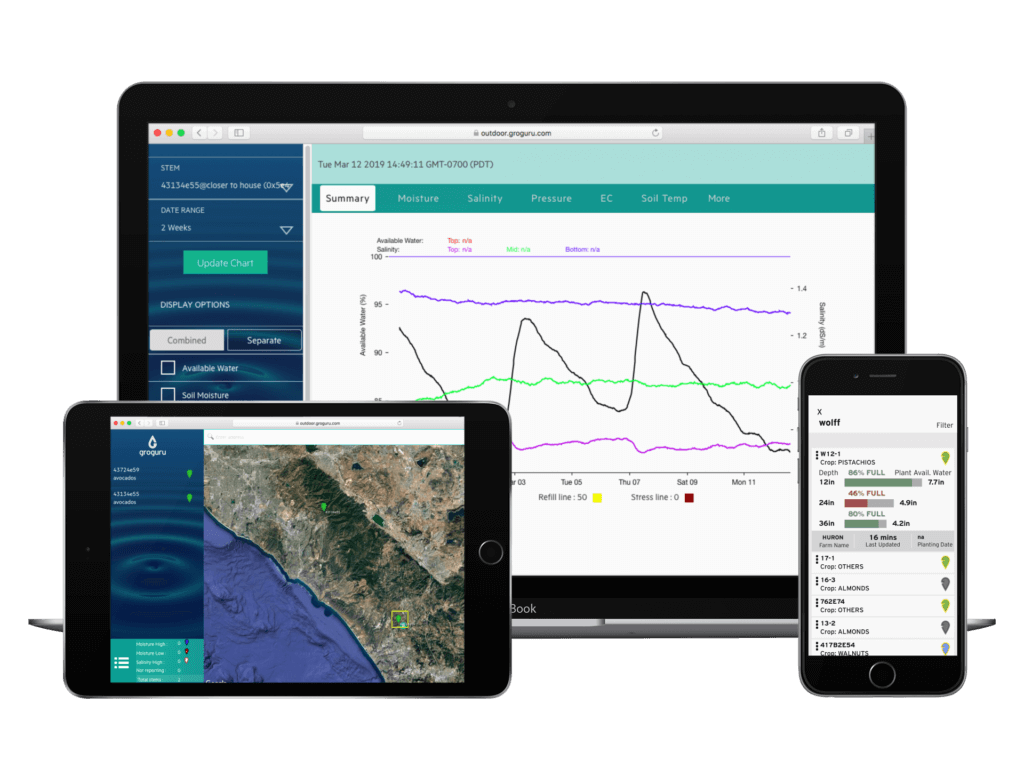 GroGuru社は、最適な灌漑を可能にするハードウェア対応のサブスクリプションサービスを農家に提供しています。